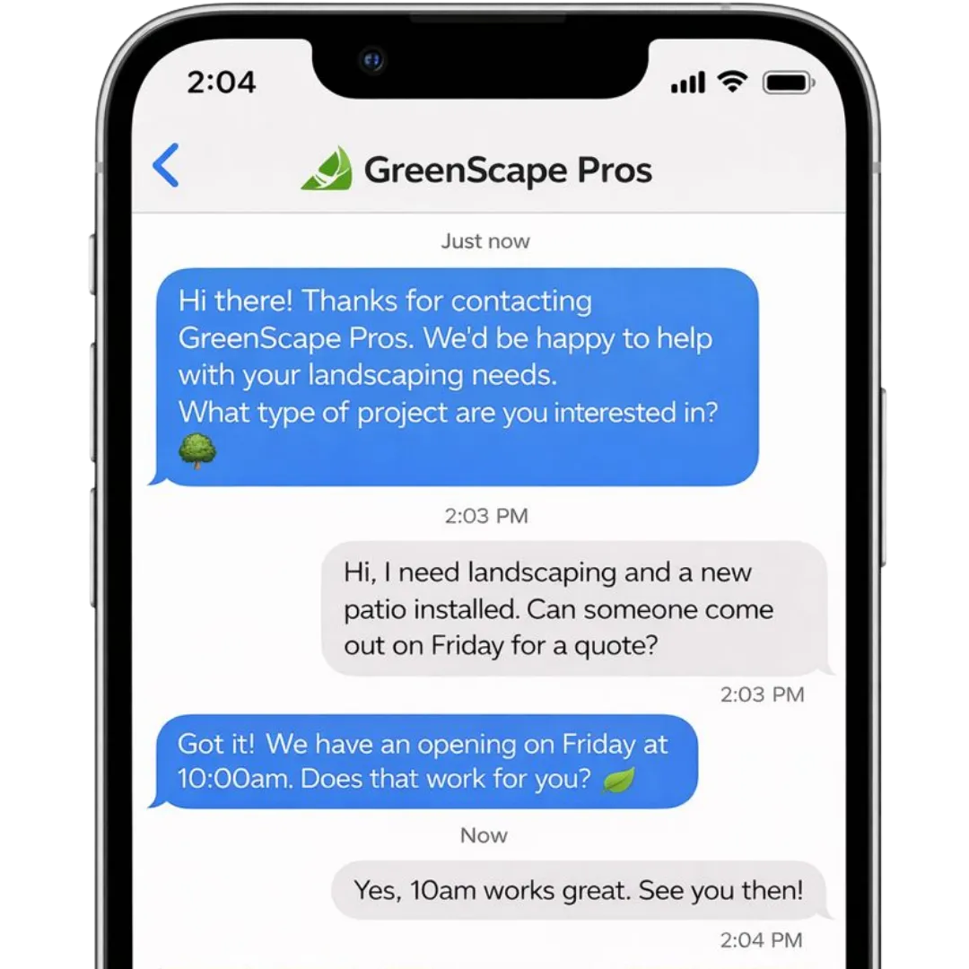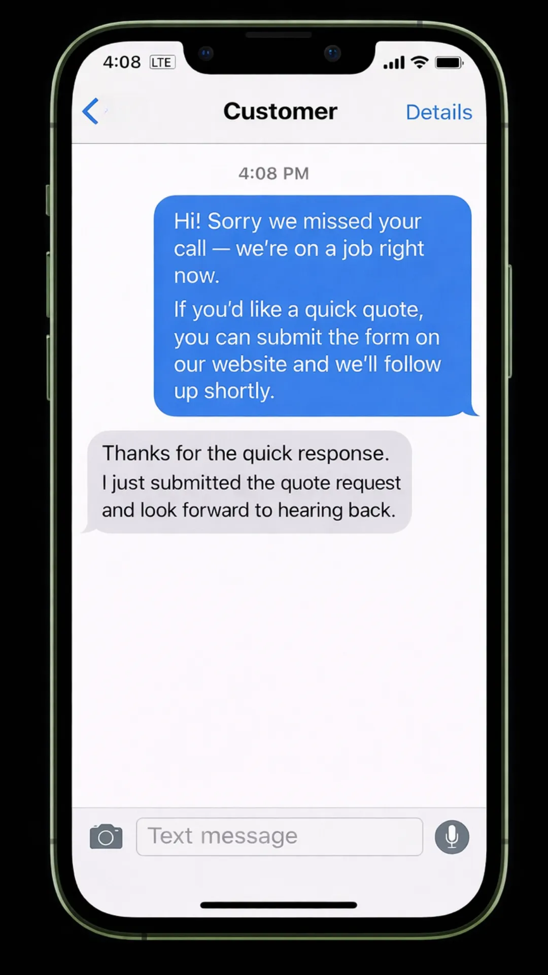 Every missed call triggers an instant, personalized text so the conversation starts without you lifting a finger.